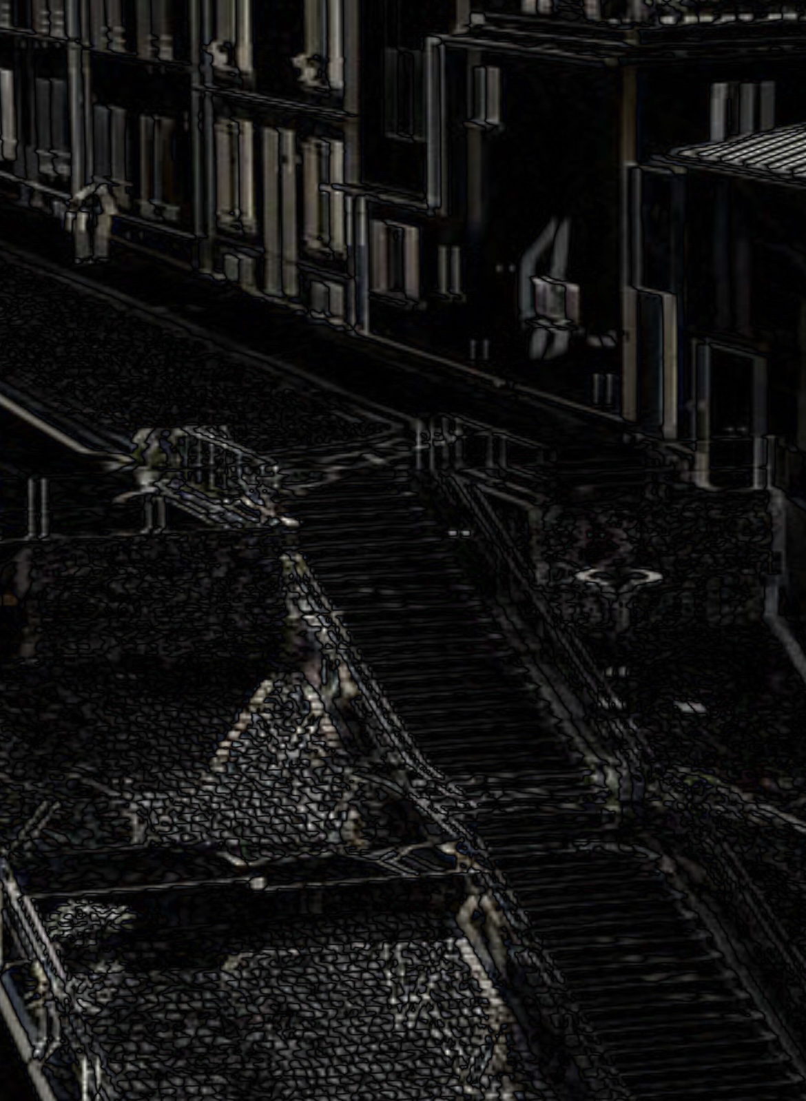 The city is not a backdrop — it is a force of obstruction. On the way, it interposes itself. The glitch does not correct: it responds.
